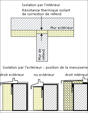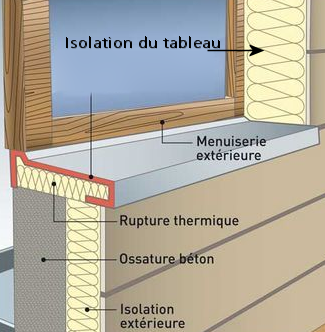 Illustration d’un tableau isolé de menuiserie en isolation par l’extérieur avec menuiserie au nu intérieur :